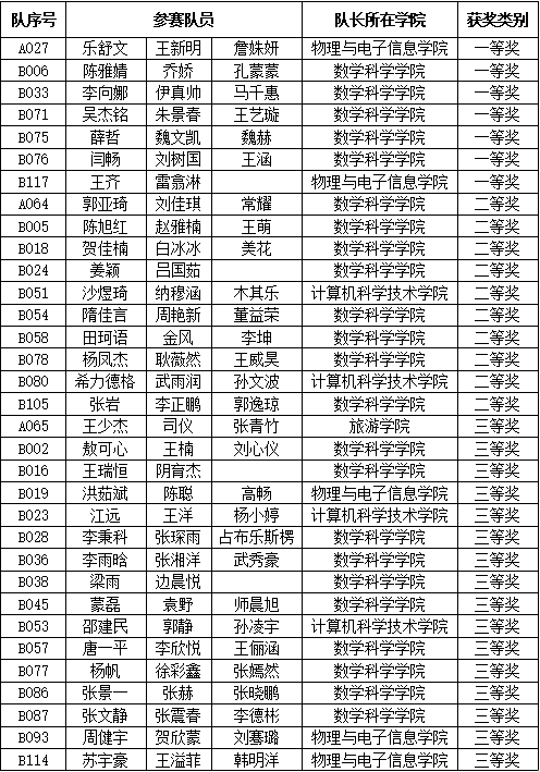 yl23411永利集团官网第七届数学建模竞赛暨2024年全国大学生数学建模竞赛校级选拔赛于2024年6月22日举行。次比赛共有来自yl23411永利集团官网、物理与电子信息学院、计算机科学技术学院、地理科学学院、旅游学院、教育学院等六个学院共118支队伍参赛,组委会共收到论文110篇。经过组委会的认真评阅,共评出一等奖7组,二等奖10组,三等奖16组。具体名单如下: