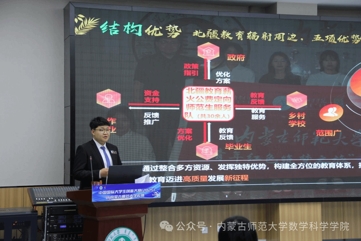 6月7日,以永利集团官网 2023 级数学与应用数学 4 班白昊杨为项目负责人与2024级数学与应用数学3班张妍茹、胡雅璇,2024级统计学班郭珈伊为团队成员的“北疆教育薪火公费定向师范生服务队”项目组在中国国际大学生创新大赛(2025)yl23411永利集团官网校赛中脱颖而出,斩获校金奖荣誉。