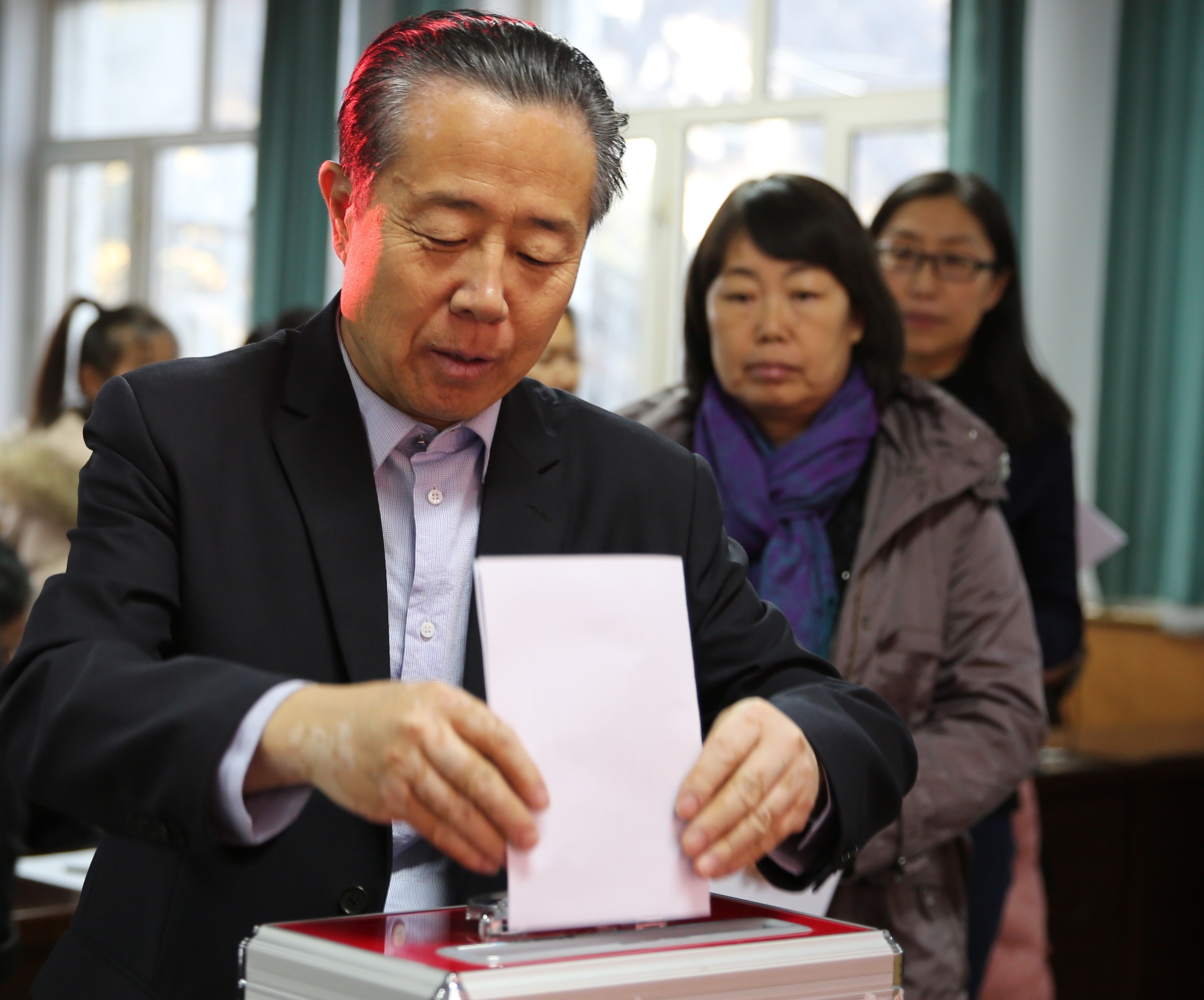 在校党委的领导下,2018年11月22日下午3:00,yl23411永利集团官网党总支换届选举党员大会在文史楼1号会议室隆重召开。按照党委组织部的批复,本次党总支换届选举党员大会如期召开。大会由yl23411永利集团官网党总支副书记副院长季建光同志主持。党总支书记扎其劳同志代表上届学院党总支委员会作工作报告。大会审议和表决通过学院党总支工作报告、选举办法、监票人和计票人。通过党员大会选举产生新一届学院党总支委员会委员扎其劳、季建光、刘官厅、包霞、李联和、毕力格图、皮建东等七位同志