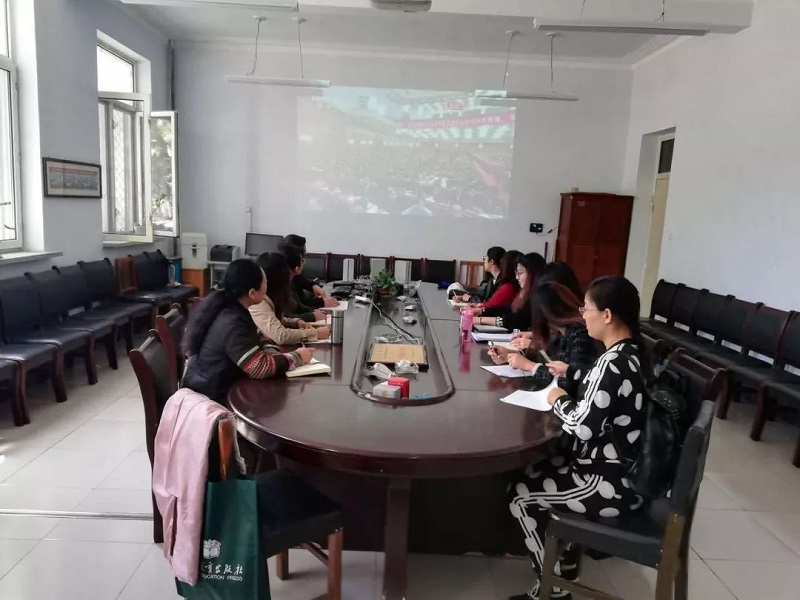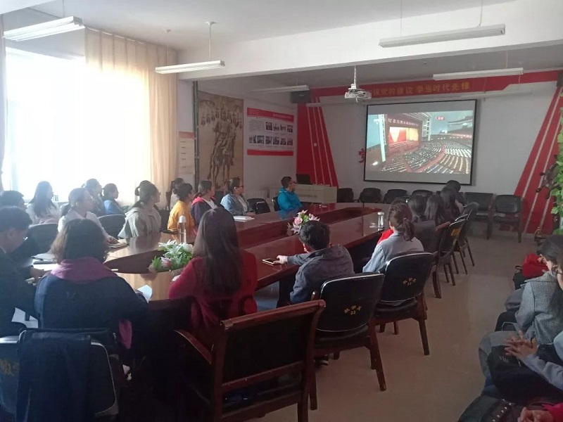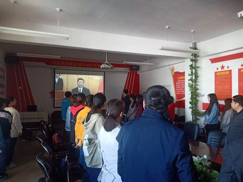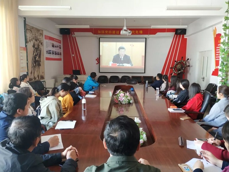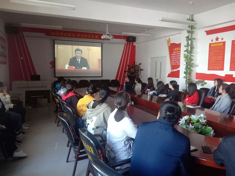 学院党总支书记扎其劳教授,学院党总支副书记、副院长季建光老师,督导员乾达门老师,团学干部3人,教师代表3人,团员36人于yl23411永利集团官网盛乐校区学院楼会议室观看大会直播。