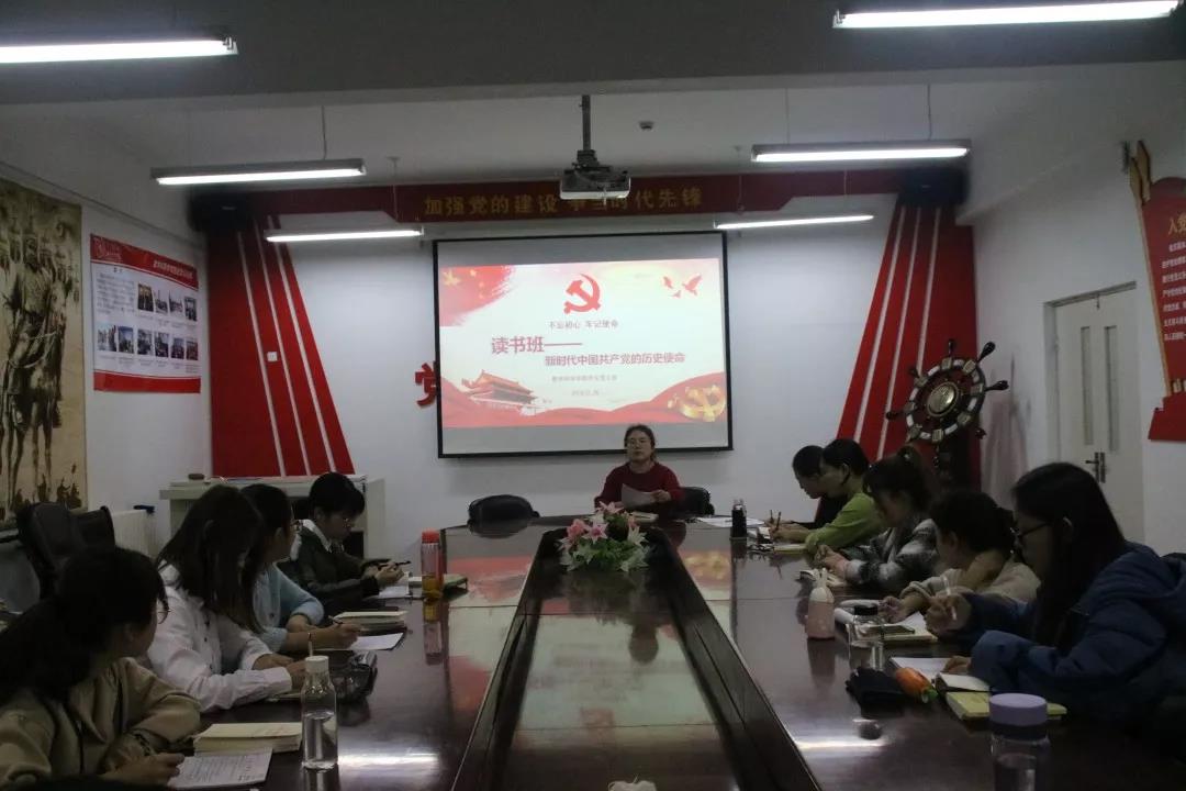 2019年11月26日,yl23411永利集团官网学生党支部于学院楼会议室举办“不忘初心、牢记使命”主题教育读书班活动。yl23411永利集团官网信息与计算科学学生党支部书记李帅带领各位学生党员、预备党员学习《习近平新时代中国特色社会主义思想学习纲要》一书。大家就中国共产党的历史使命展开讨论,并进行深入交流,进一步加深对习近平新时代中国特色社会主义思想的理解,真切认识到新时代中国共产党的历史使命。