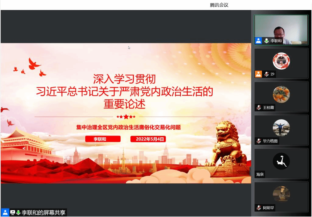 2022年5月4日,yl23411永利集团官网召开会议传达学习《关于集中治理全区党内政治生活庸俗化交易化问题的工作安排》,通报了党内政治生活庸俗化交易化问题清单。40名教师党员集体学习了习近平总书记关于严肃党内政治生活的重要论述。学院党委副书记李联和主持会议。