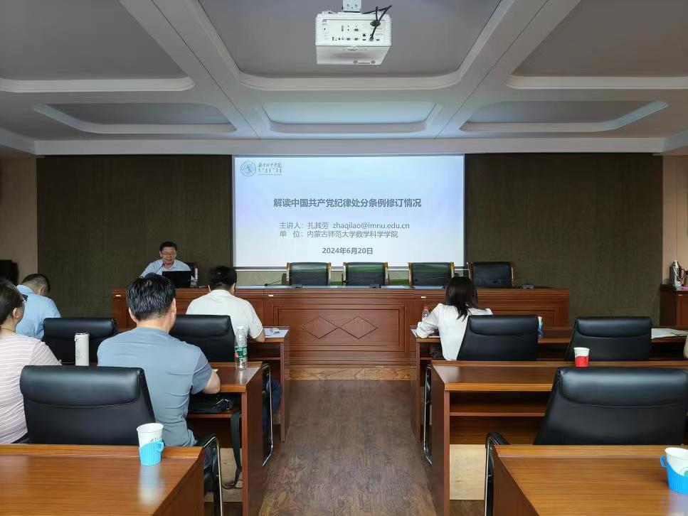 为深入学习领会习近平总书记关于全面加强党的纪律建设的重要论述,认真领悟贯彻新修订的《中国共产党纪律处分条例》,进一步推动党纪学习教育入脑入心、见行见效,6月20日下午,yl23411永利集团官网开展《中国共产党纪律处分条例》(以下简称《条例》)修订情况解读专题学习会,学习会由学院院长扎其劳主讲,学院党委委员、各支部书记以及全体辅导员参加学习。