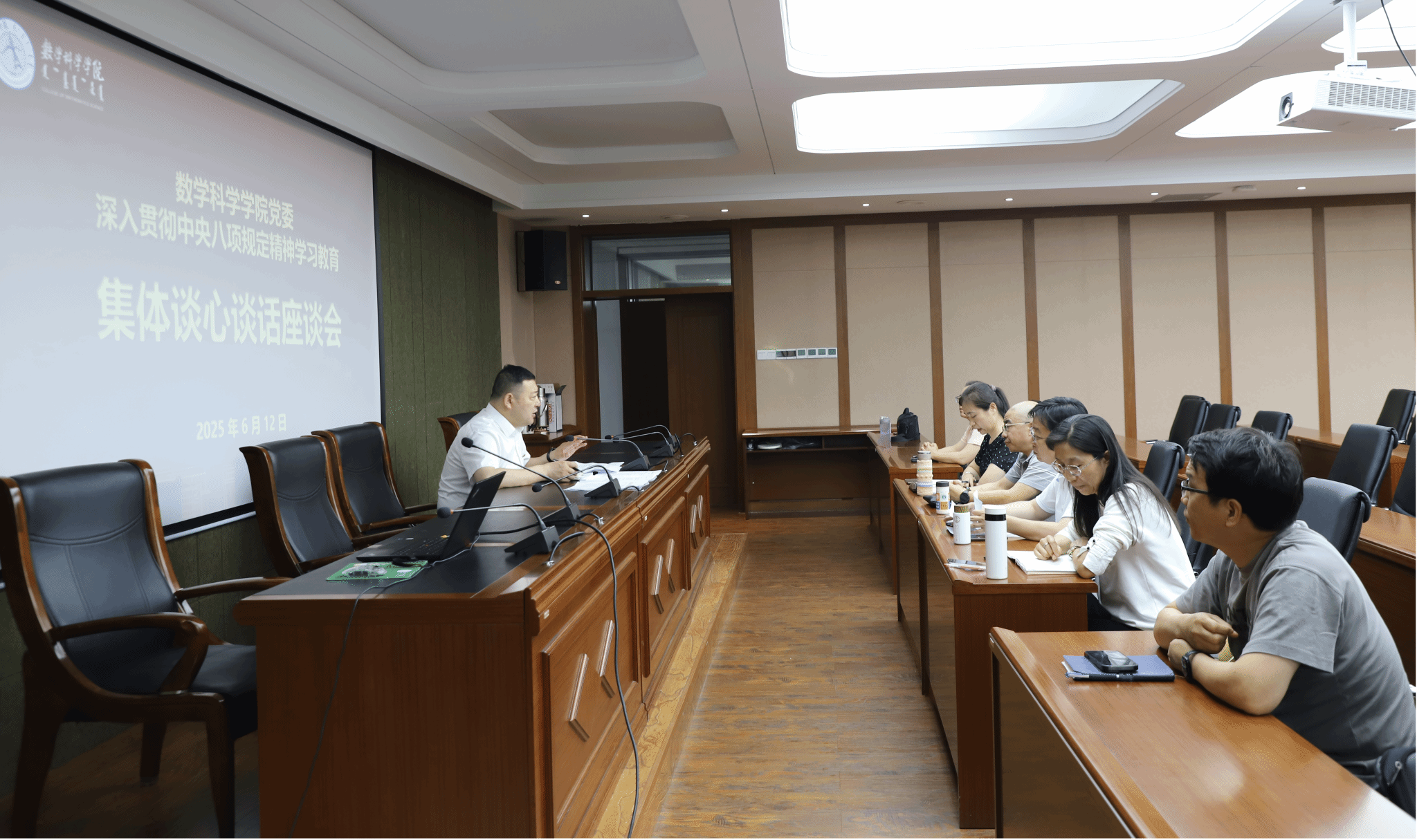 6月12日下午,yl23411永利集团官网召开深入贯彻中央八项规定精神学习教育集体谈心谈话座谈会。学院党委书记张伟就集中整治违规吃喝问题,以座谈会的形式与班子成员、党委委员、支部书记进行了集体谈心谈话。