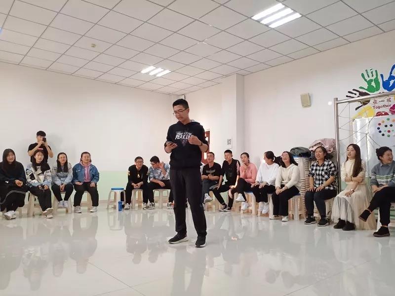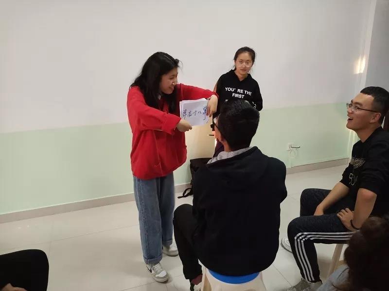 将同学们分为六组,每组第一名同学根据词语做动作,中间同学负责传递,最后一个同学根据同学们传递来的动作猜出词语。这个游戏锻炼同学们的肢体表达能力,理解能力,使同学们间可以更好的沟通。