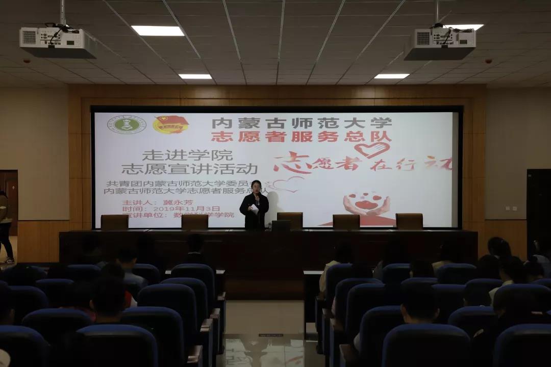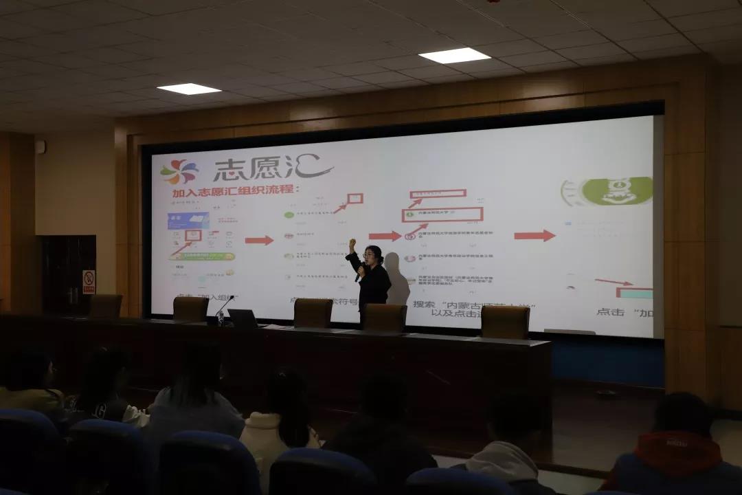 2019年11月3日,为使各位同学积极投入志愿服务活动,更好地了解“志愿汇”APP,yl23411永利集团官网志愿者服务总队负责人冀永芳同学向yl23411永利集团官网各班班委及学生代表就志愿服务活动及“志愿汇”APP相关问题进行宣讲,此次志愿宣讲活动于学生事务中心一楼报告厅举行。