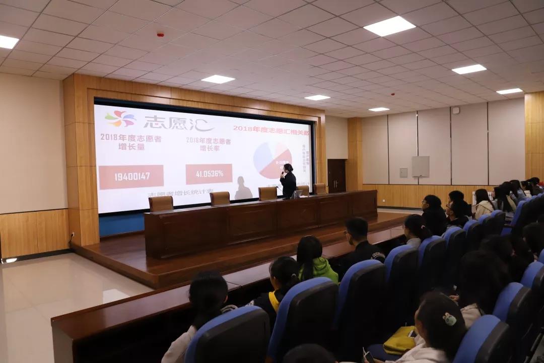 宣讲中冀永芳同学提到国家对志愿服务的重视,并向同学们介绍了“志愿汇”APP的注册流程及部分功能、2018年“志愿汇”相关统计数据、yl23411永利集团官网志愿者服务总队开展的部分活动。