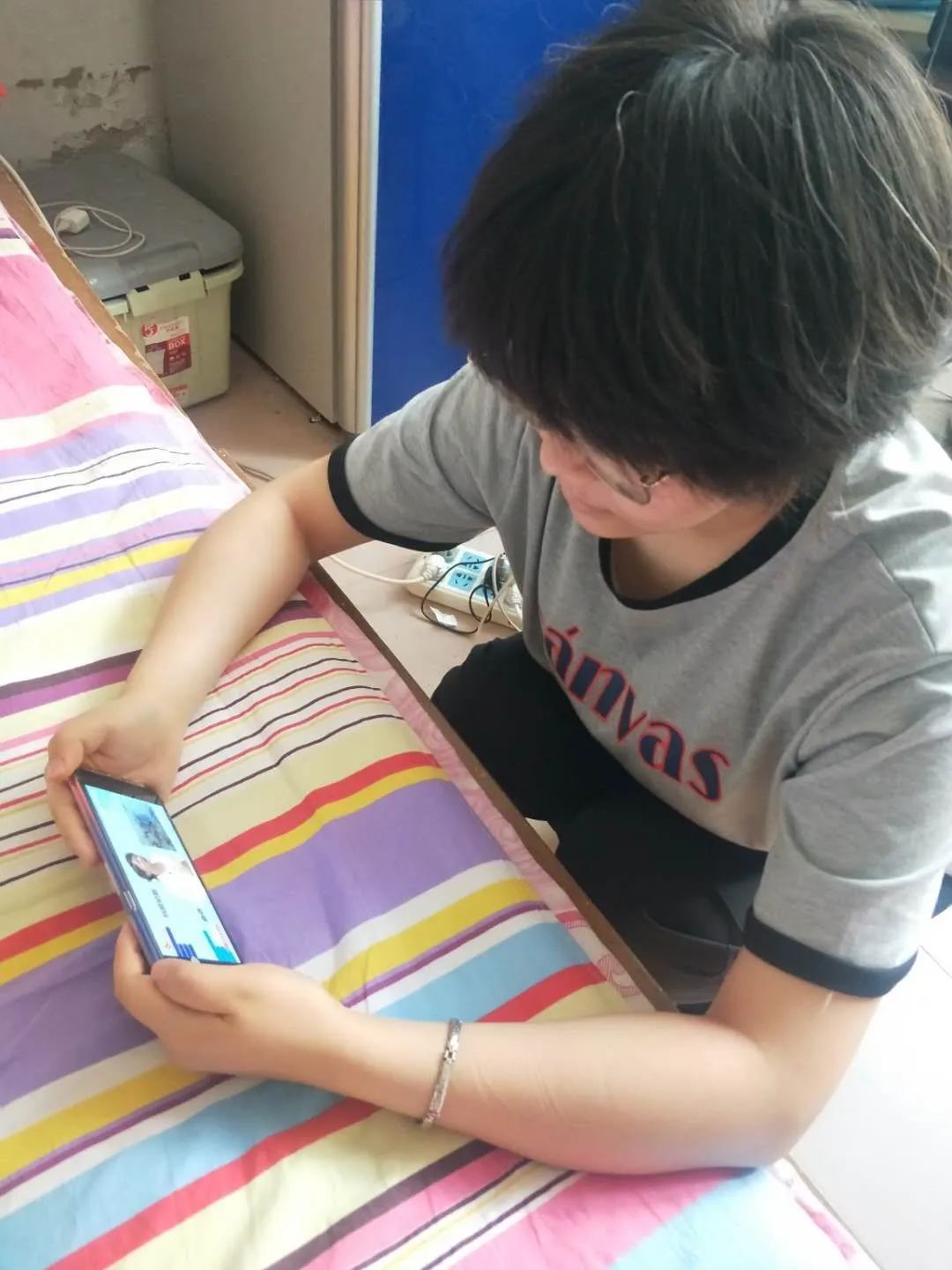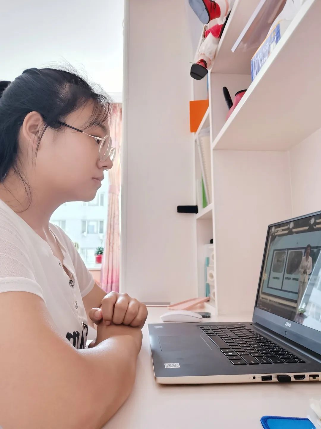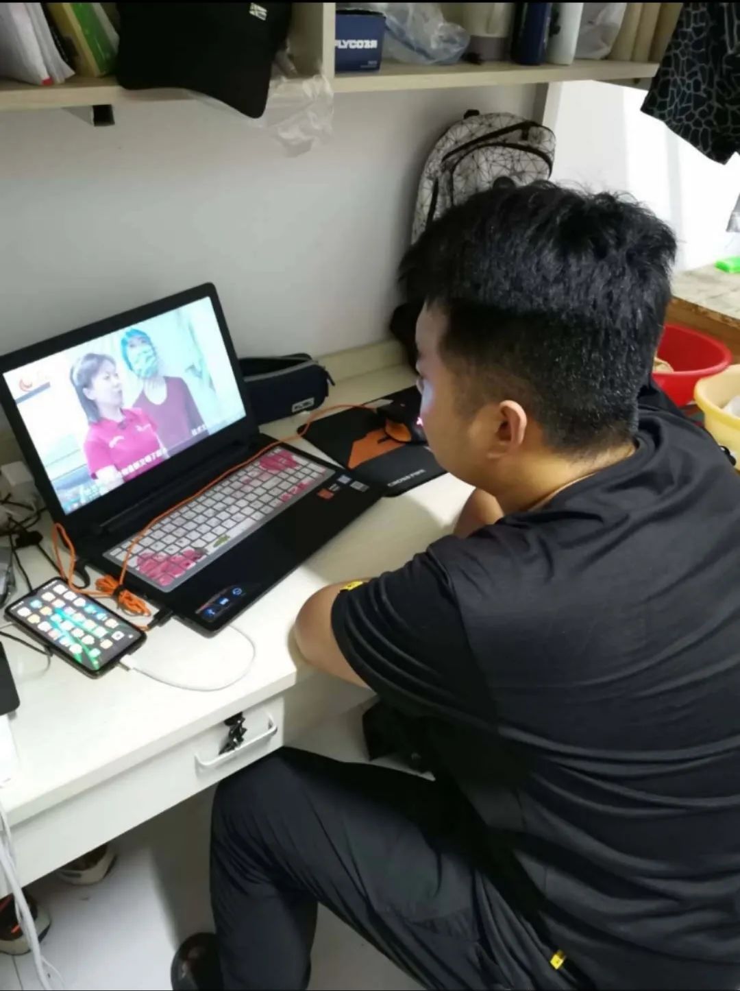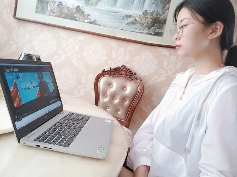 同学们认真观看直播。