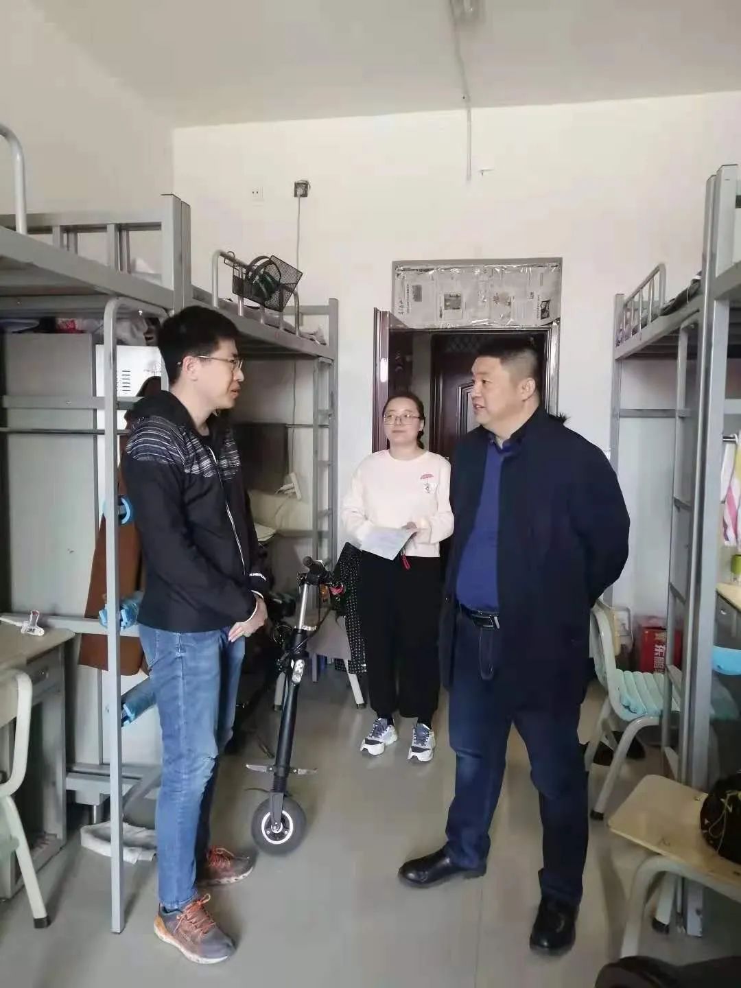 为了加强学生宿舍内务、卫生管理,推进学生宿舍文明建设,2021年4月28日上午永利集团官网党总支副书记、副院长季建光老师,辅导员刘沙沙老师来到研究生公寓检查学生宿舍内务情况。