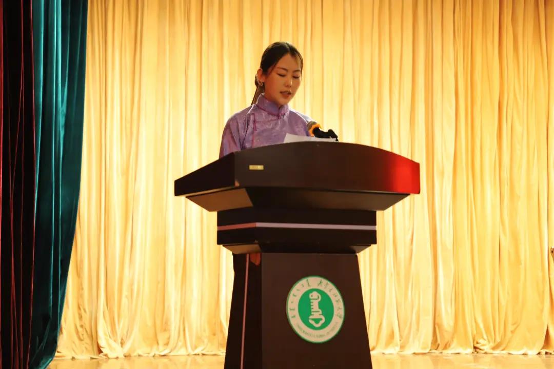 在校学生代表19级汉一班董佳同学发言。