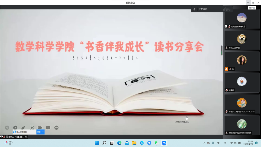 为了铸牢中华民族共同体意识,营造良好的读书氛围,推进书香校园建设,yl23411永利集团官网于4月29日举办“书香伴我成长”线上读书分享会。本次分享会邀请了五位yl23411永利集团官网的优秀学子为同学们分享他们的读书经历。