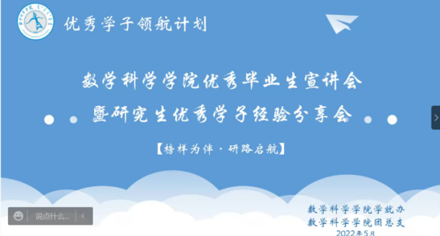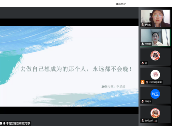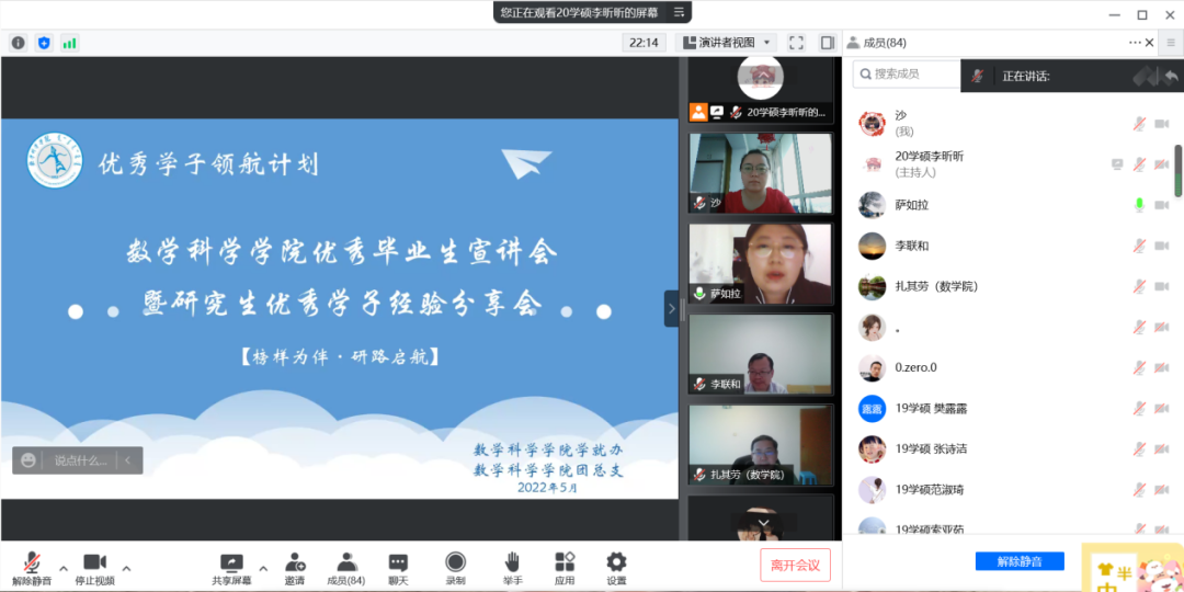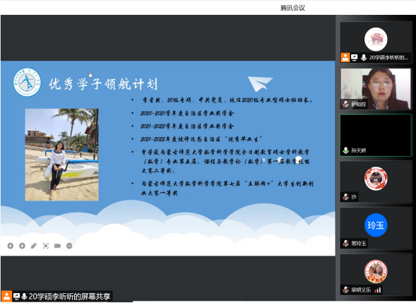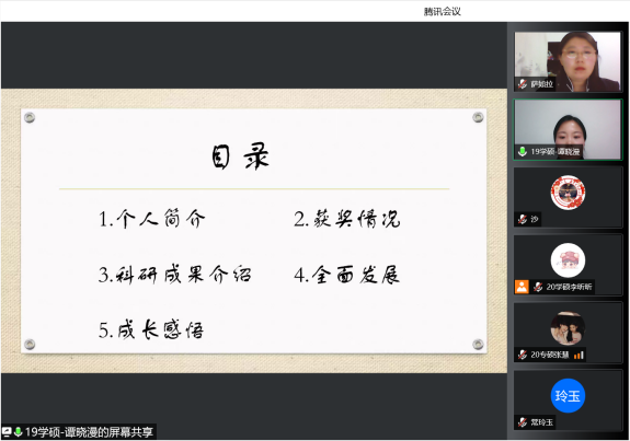 为了充分发挥研究生优秀学子的示范引领作用,更好地落实《yl23411永利集团官网关于开展“榜样为伴·研路启航”研究生国家奖学金获得者事迹宣传活动的通知》《内蒙古自治区教育厅关于报送2022年春季学期研究生教育教学典型案例的通知》《关于组织开展yl23411永利集团官网“学生劳动教育宣传月”活动的通知》等文件要求,永利集团官网于5月23日晚,组织全体研究生开展“yl23411永利集团官网优秀毕业生宣讲会暨研究生优秀学子经验分享会”,邀请永利集团官网2021年度国家奖学金获得者索亚茹、张慧,2021年度自治区奖学金获得者孙天娇、谭晓漫,2021-2022年度自治区“优秀毕业生”李星然、“三好学生”索亚茹,共5名优秀学子为大家分享自己学习生涯中的经验和感悟。