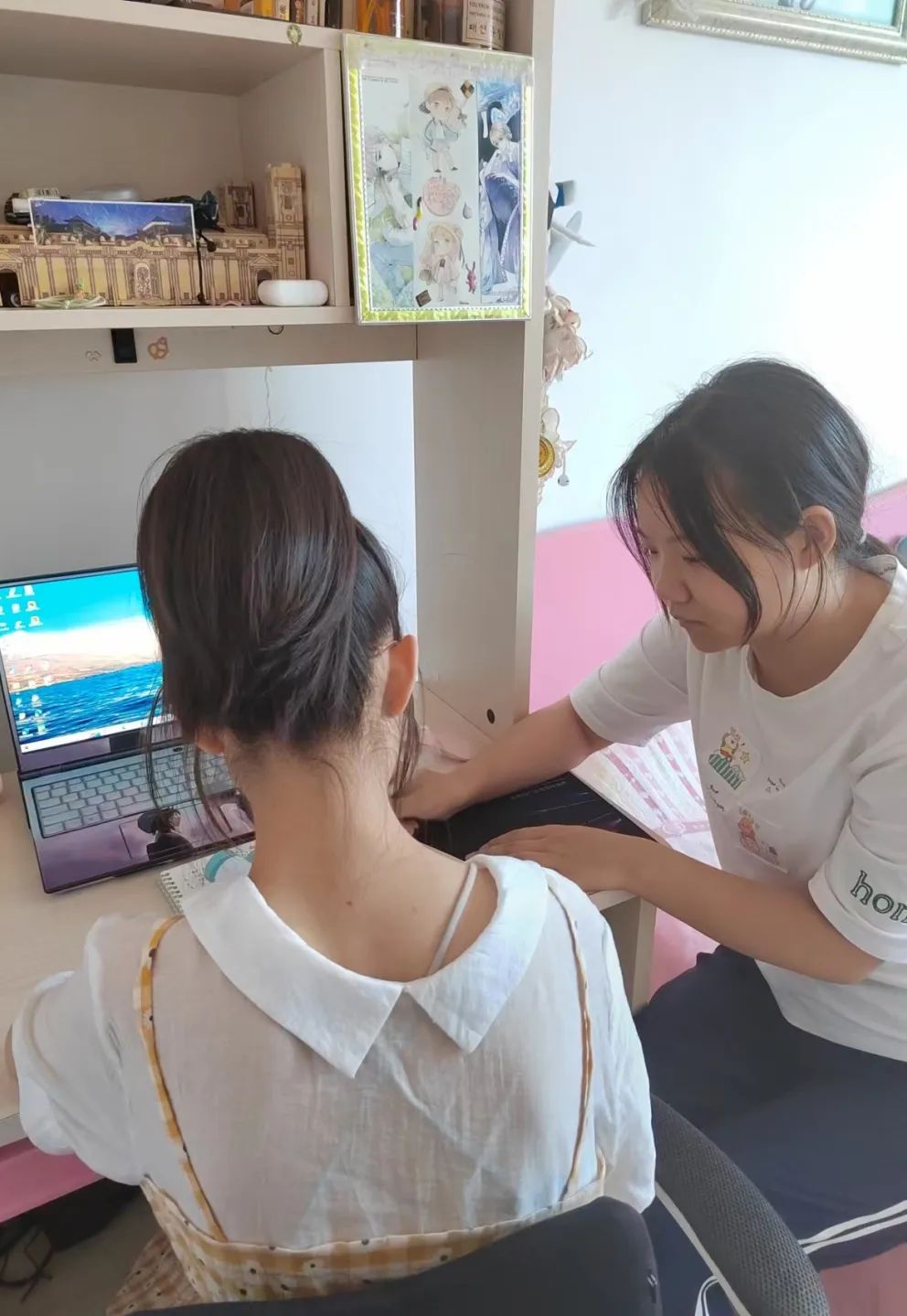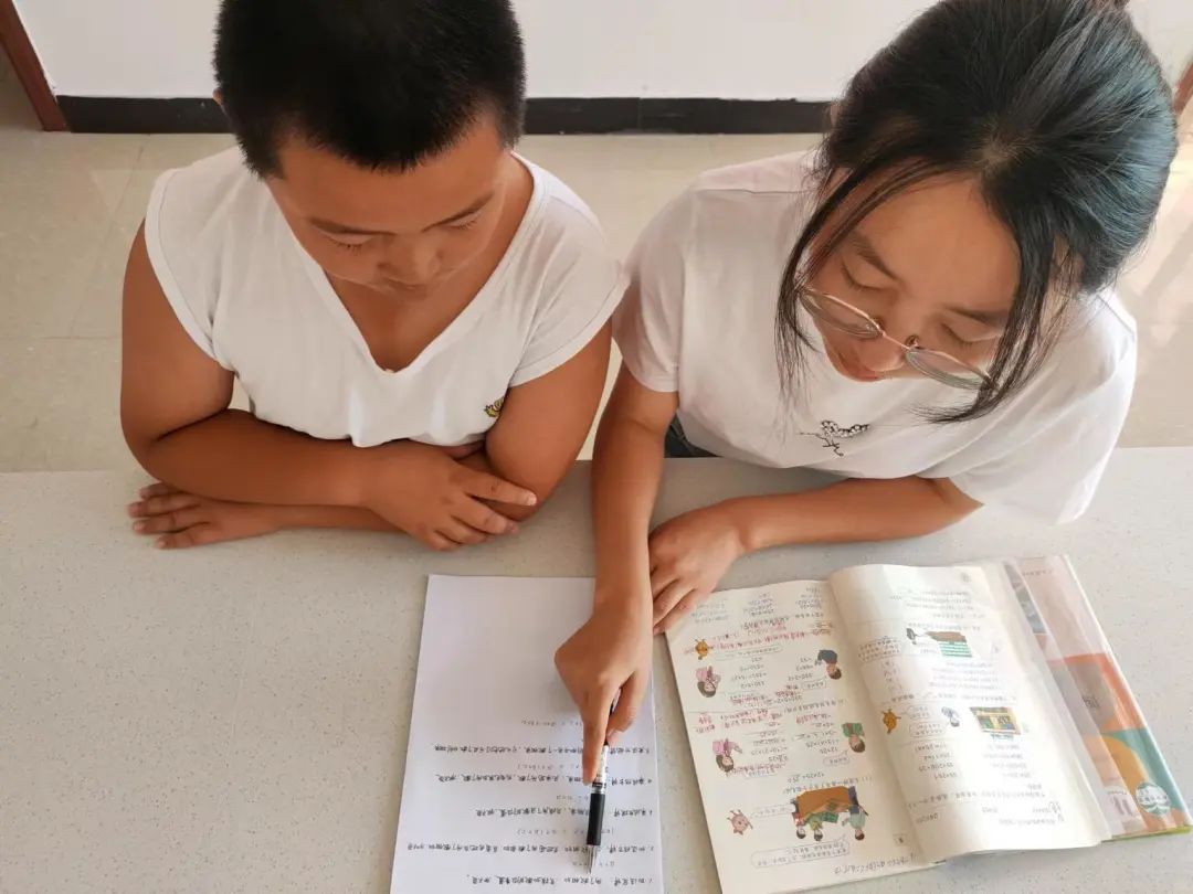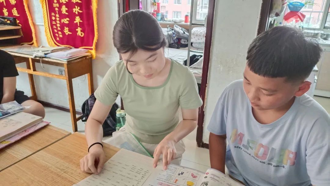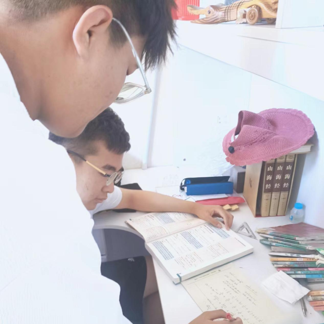 志愿者们耐心地对帮助对象进行着一对一课程和作业辅导,针对每个学生的不同情况制定高效的指导计划。