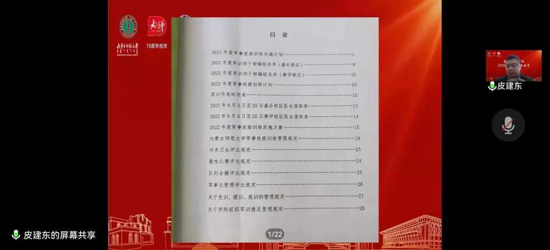 9月6日上午7:30,yl23411永利集团官网于线上举办2022年度学生军事技能训练动员大会。学院学生思想政治工作辅导员刘沙沙老师主持此次会议,yl23411永利集团官网党委副书记、副院长季建光老师、学院团总支书记皮建东老师参加此次会议。
