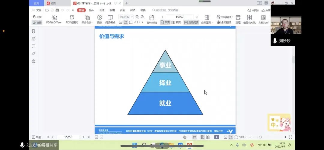 为帮助新生了解专业发展动态、强化专业归属感,树立专业学习信心,培养专业意识和思维能力,激发学习内在动力,9月7日上午10点,yl23411永利集团官网学生思想政治辅导员刘沙沙老师于腾讯会议上开展了“2022级新生入学教育——新生学业规划引导教育讲座”。