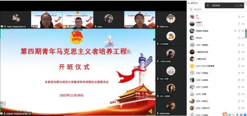 开班仪式由yl23411永利集团官网团总支书记皮建东老师主持,党委副书记、副院长季建光老师,学院学就办副主任刘沙沙老师,学院辅导员萨如拉老师出席,多名志愿者服务队干部和优秀团员作为青马班学员参加,第四期青马班为期两周的学习自此开始。
