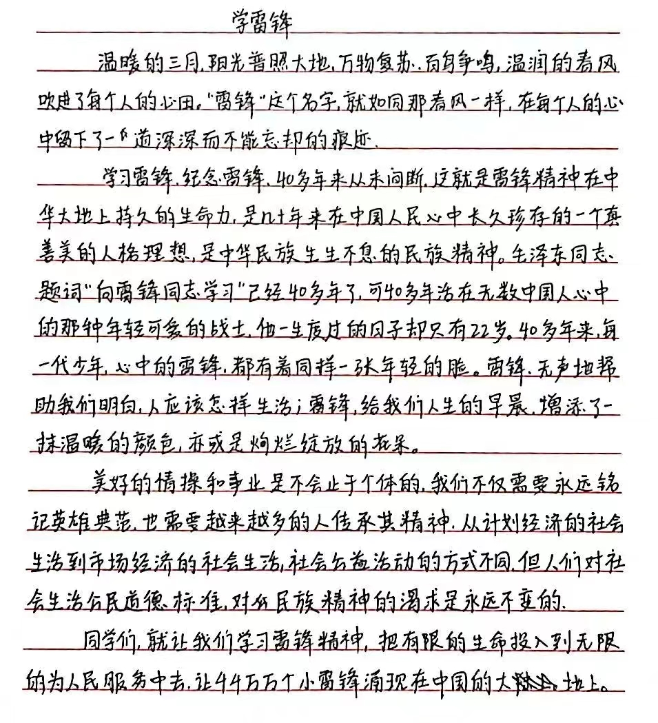 为进一步学习和弘扬雷锋精神,形成“人人学雷锋、时时有雷锋、处处见雷锋”的良好氛围,扎实有效推进学生思想道德教育,3月5日,yl23411永利集团官网举办学雷锋纪念日主题征文活动。
