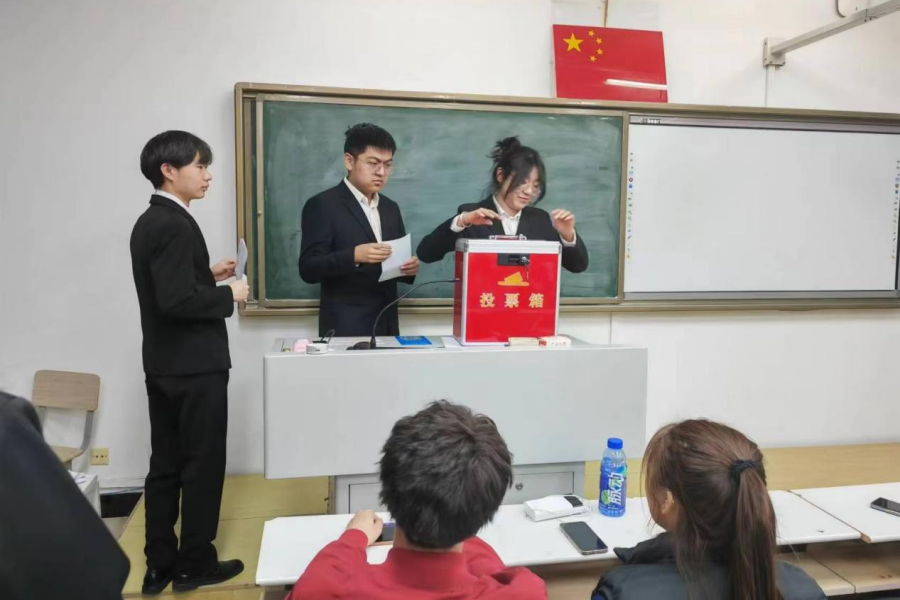 选举大会上,团总支副书记阿茹罕老师宣读《yl23411永利集团官网第三十二次学生代表大会代表选举办法》、《共青团yl23411永利集团官网第十三次代表大会代表选举法》、监票人建议名单和计票人建议名单,经过举手表决,全体通过。经过监票人检查票箱正常并加封后,由计票人领取并向各代表分发选票。各代表填写选票,监票人、计票人投票,并引导其他代表投票。投票完毕后开箱清点选票。