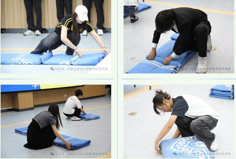 “叠”出风采,“被”感温暖,将军训内务标准融入比赛规则,既是对生活技能的检验,更是对军训精神的致敬。赛场上,选手们神情专注,双手迅速将被子铺平、压实、折叠,棱角分明的“豆腐块”在指缝间逐渐成型。活动不仅提升了学生的内务整理能力,更让军训中锤炼的纪律意识与坚持精神在宿舍生活中延续生根。