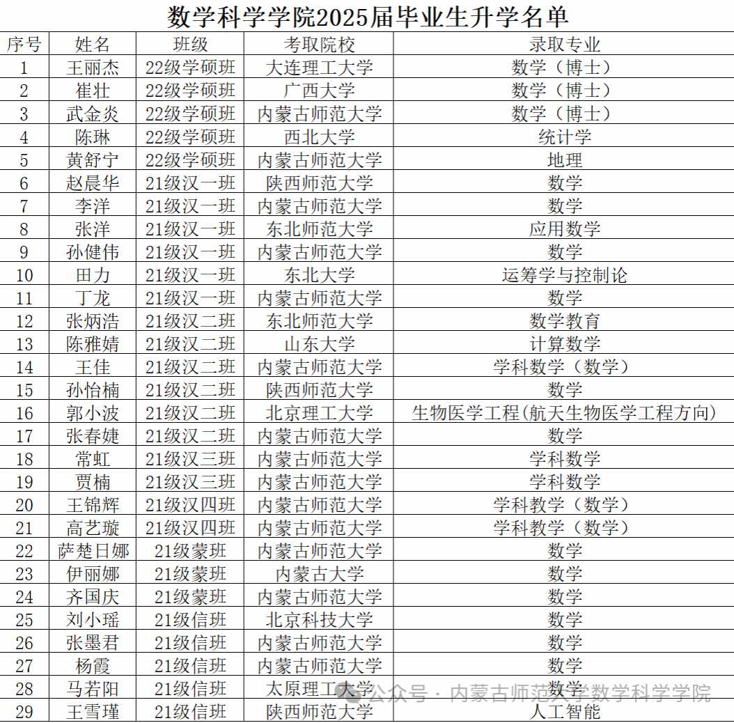 2025年yl23411永利集团官网考取博士、硕士研究生名单如下(共29名,排名不分先后):