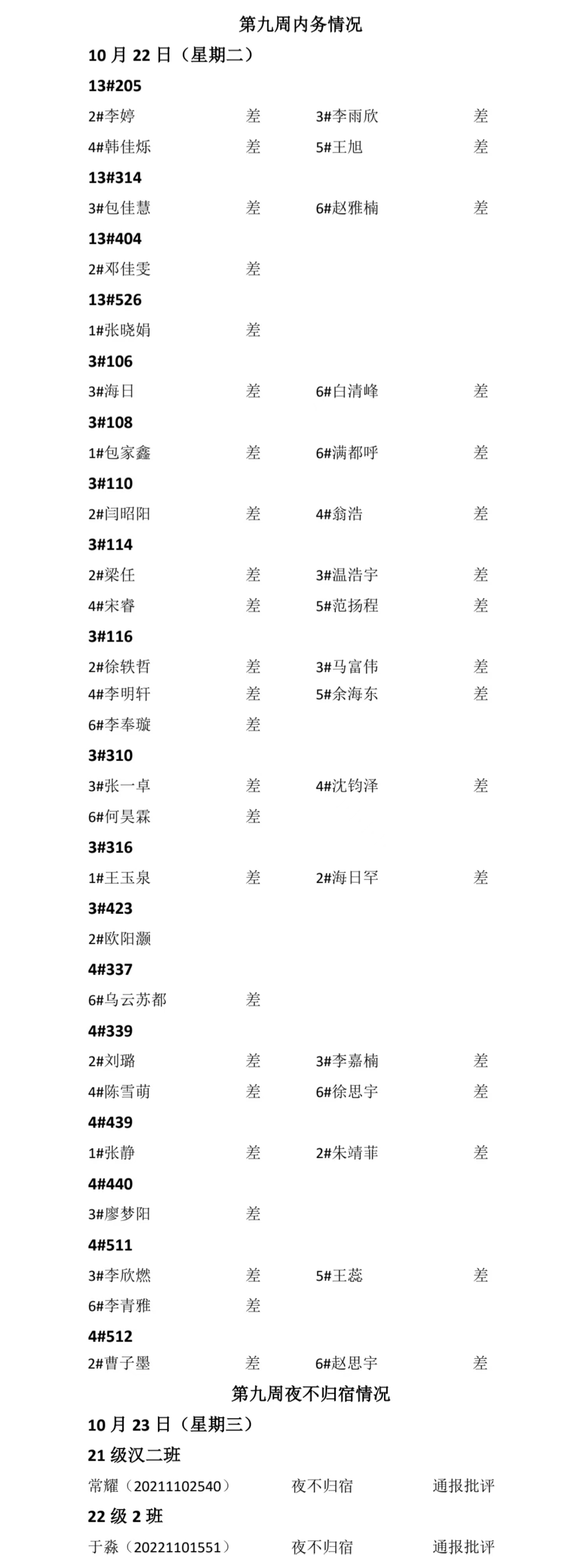 yl23411永利集团官网2024——2025年度第一学期第九周通报情况