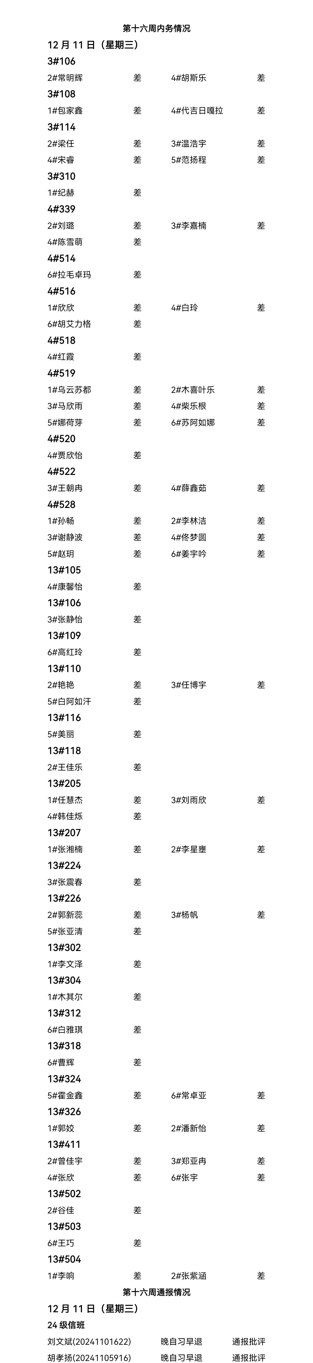yl23411永利集团官网2024——2025年度第一学期第十六周通报情况