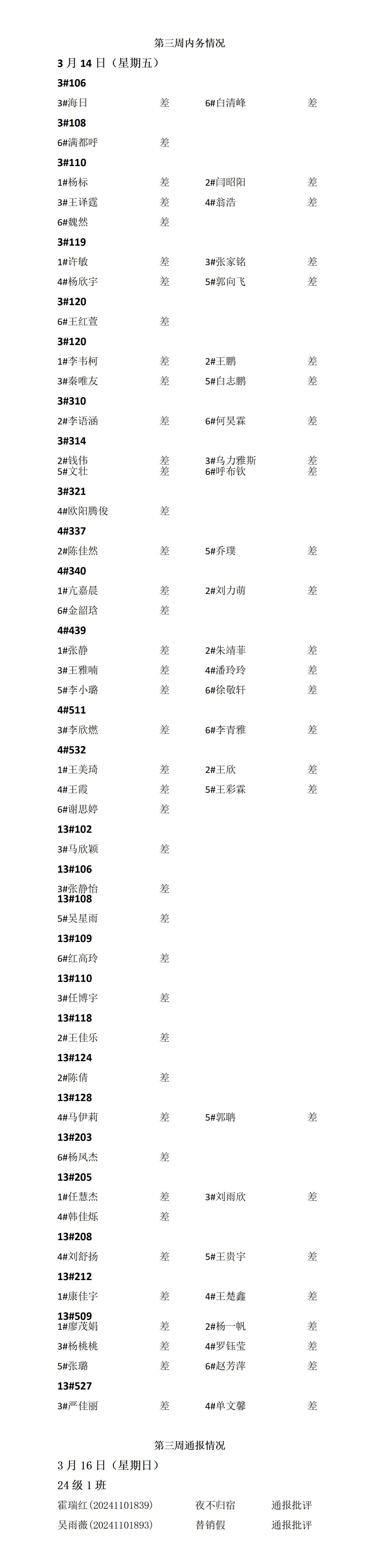 yl23411永利集团官网2024——2025年度第二学期第三周通报情况