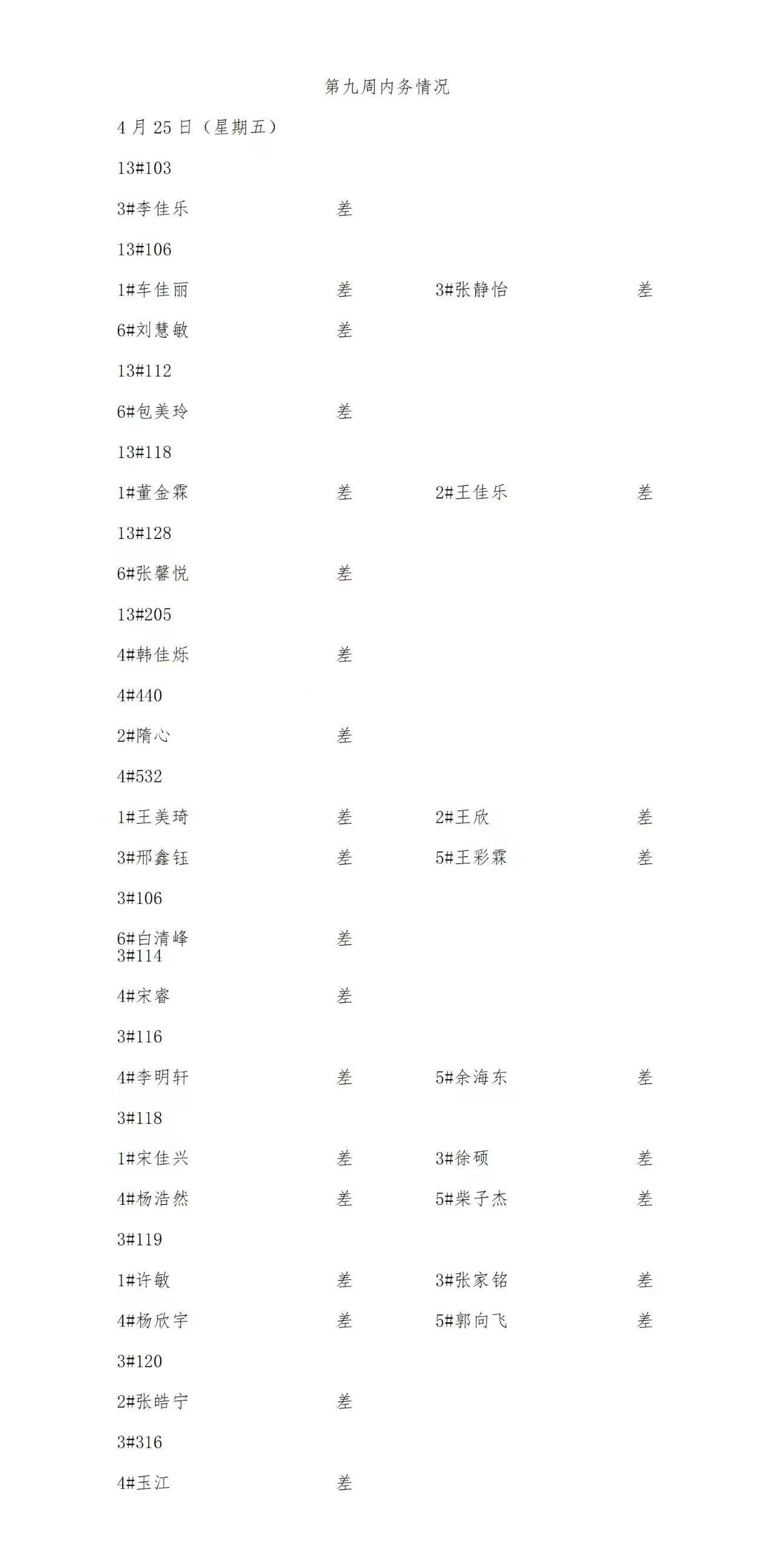 yl23411永利集团官网2024——2025年度第二学期第九周通报情况