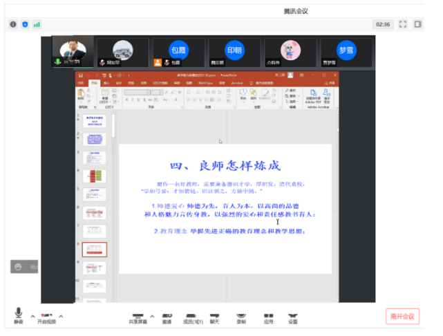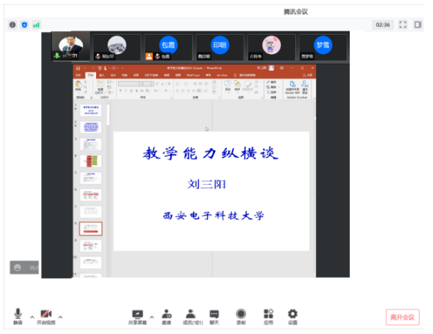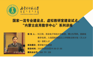 2022年4月20日19:00—21:00yl23411永利集团官网在线开展“国家一流专业建设、虚拟教研室建设、内蒙古应用数学中心”系列讲座。本次特邀请国家教学名师、西安电子科技大学刘三阳教授作主题为“教学能力纵横谈”的报告。报告由包霞副院长主持,院长扎其劳教授、党委书记李联和教授、副书记季建光老师及学院全体教师和慕名而来的其他院校部分教师聆听了本次报告。
