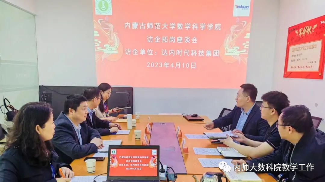 座谈会上,校企双方围绕着教学特色、人才培养、产学研合作、实习就业等话题,总结了过往合作中协同育人经验,并就未来如何面向数字经济发展、提升人才培养质量,结合产业需求广泛开拓就业渠道和就业岗位,为毕业生创造更多实习和就业机会等方面展开了深入交流,并对三家公司进行了实地参观调研。同时在达内教育集团慰问了学院2020级信息与计算科学专业实习的同学们,了解和关心同学们实习期间的学习和生活情况。在座谈会中,扎其劳院长详细介绍了学院的专业建设、师资力量、人才培养、平台与实验室建设及产教融合等方面的情况,并表示希望结合学院在数学与应用数学、信息与计算科学和统计学等专业的特色优势,与企业共研创新人才培养模式,提高学生就业竞争力。扎其劳院长表示学院高度重视毕业生就业工作,开展“访企拓岗”是深化校企合作,推动毕业生高质量就业的重要举措,希望能通过主动走访企业,与企业建立长效沟通合作机制,为毕业生提供更多实习和就业机会。