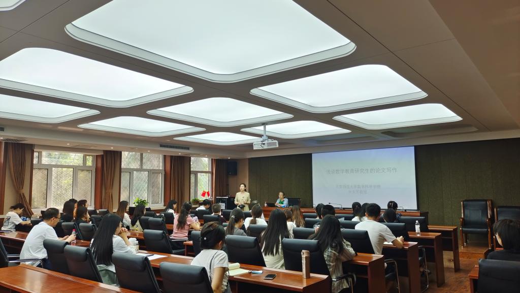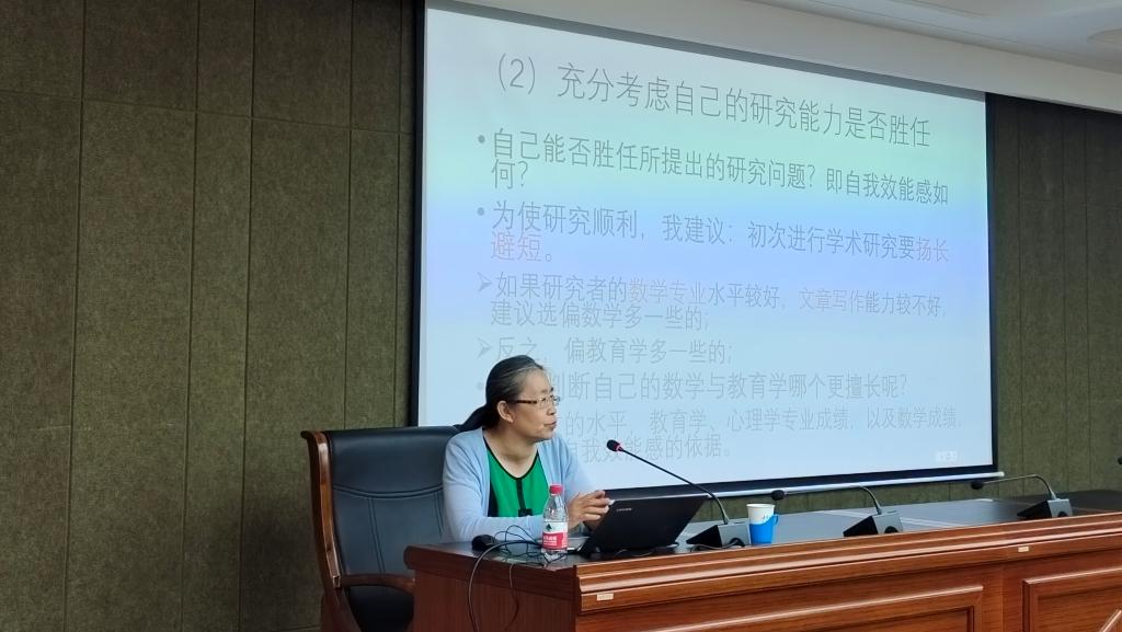 6月18日,永利集团官网特邀中国教育学会中学数学教学专业委员会副理事长、学术委员会副主任、北京师范大学博士生导师朱文芳教授作了题为“浅谈数学教育研究生的论文写作”的学术讲座。讲座由永利集团官网李春兰教授主持,参加本次讲座的主要有永利集团官网领导、老师、数学教育方向的硕士研究生、硕士研究生实践导师、其他学院的师生。