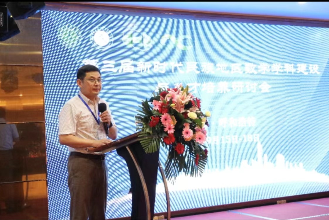 开幕式上,我校党委委员、副校长韩巍致开幕辞,并向长期以来支持和关心内蒙古族地区数学学科建设与发展的各位专家、学者表示衷心地感谢。他指出,近年来yl23411永利集团官网取得了一系列的成绩,获批教育部重点实验室、教育部“数学与应用数学专业虚拟教研室”、内蒙古自治区应用数学中心、数学一级学科博士学位授予权、国家级一流本科专业建设点、国家级一流课程、自治区一流建设学科、自治区一流拔尖培育学科、自治区高等教育教学成果奖一等奖,通过了普通高等学校师范类专业二级认证,为民族地区数学学科建设与人才培养奠定了良好的基础。