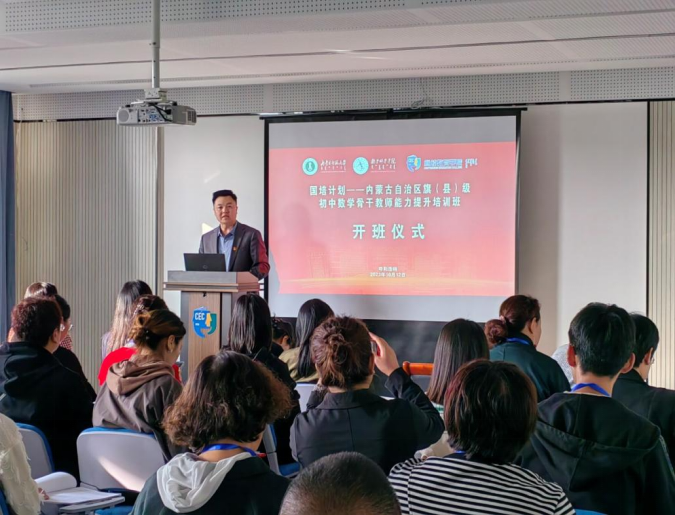 2023年10月12日,由yl23411永利集团官网继续教育学院主办、yl23411永利集团官网承办的2023年“国培计划”——内蒙古自治区旗(县)级初中数学骨干教师能力提升培训班开班。继续教育学院党总支副书记、副院长刘云剑,承办方项目负责人yl23411永利集团官网副院长包霞、培训班班主任陈阿茹娜、于家祺和相关工作人员张倩、刘雨晴、姚欣悦参加开班仪式。会议由yl23411永利集团官网陈阿茹娜老师主持。