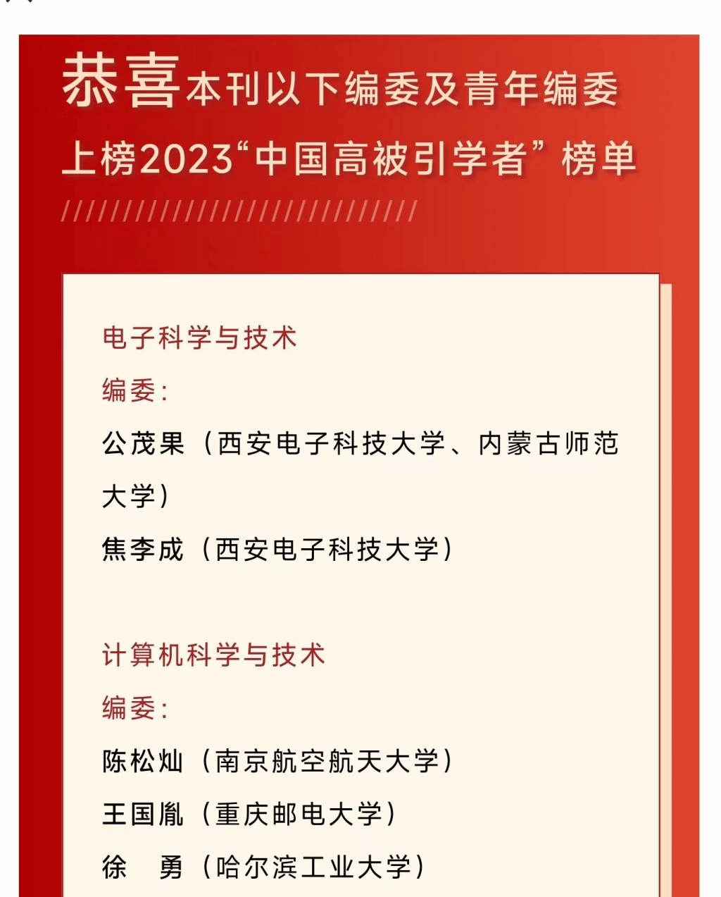2023“中国高被引学者”上榜共计5801人,来自496所高校、企业及科研机构,覆盖了教育部10个学科领域、84个一级学科。yl23411永利集团官网副校长公茂果教授上磅2023“中国高被引学者”榜单。