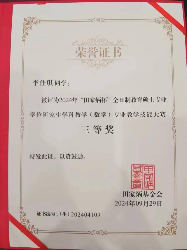 自6月8日开始,三位指导教师与参赛选手一起分析教科书内容、梳理教学设计思路、讨论研究教学创新点、模拟授课后评价修改精益求精备赛决赛。指导教师们倾囊相授,提出宝贵建议,参赛选手们不断突破、力争上游。经过9月28日一天紧张而激烈的角逐,永利集团官网2023级研究生于家祺同学荣获一等奖,李佳琪和姚欣悦同学分别荣获三等奖,刘雨晴同学荣获优秀教学设计奖,三位指导老师被评为优秀指导教师。