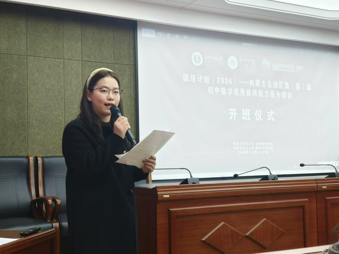11月4日,由yl23411永利集团官网继续教育学院主办、yl23411永利集团官网承办的2024年“国培计划”——内蒙古自治区旗(县)级初中数学优秀教师能力提升培训班正式开班。yl23411永利集团官网党委书记张伟、副院长萨和雅、华东师范大学yl23411永利集团官网鲍建生教授、yl23411永利集团官网科学技术史研究院代钦教授、yl23411永利集团官网李春兰教授、班主任老师陈阿茹娜、郑佳璇以及培训班全体学员参加了开班仪式。会议由yl23411永利集团官网郑佳璇博士主持。