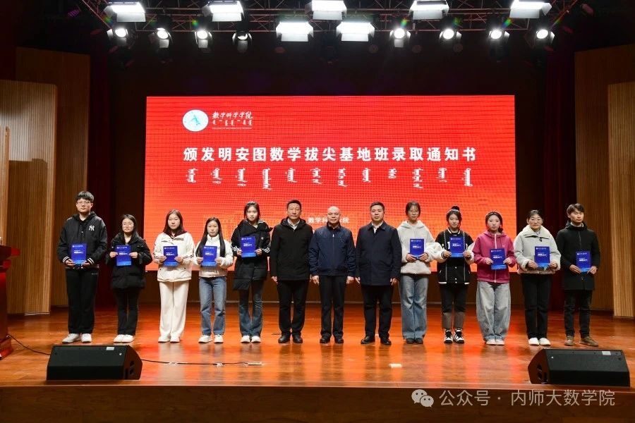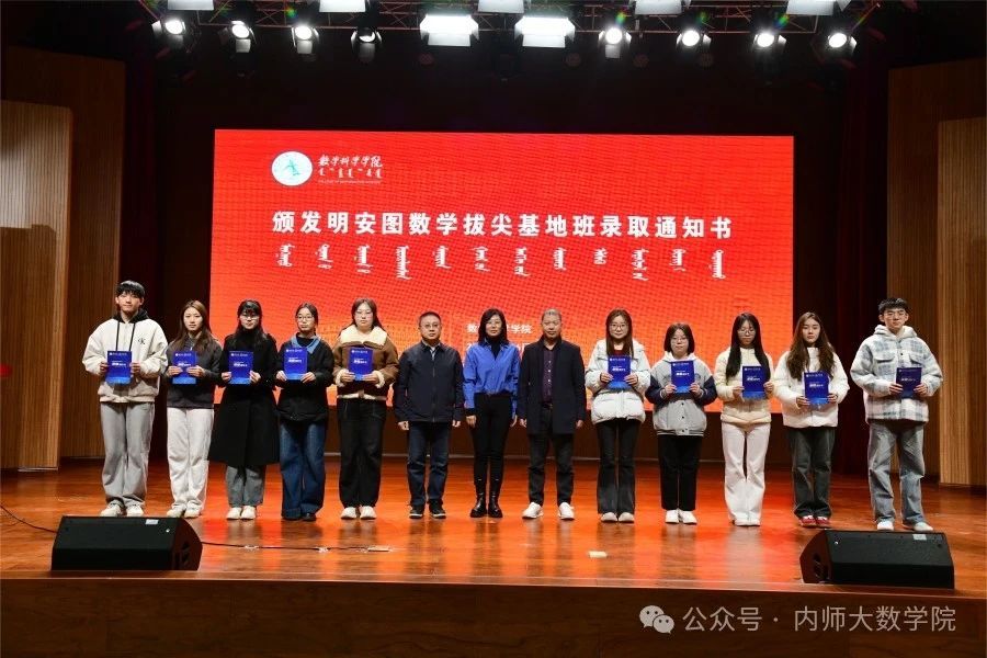 在学校党委和相关部门的大力支持下,yl23411永利集团官网积极申报自治区基础学科人才培养基地建设点,成功获批建设“明安图数学拔尖学生培养基地”。经过选拔,来自yl23411永利集团官网的20名2024 级同学成为明安图数学拔尖基地班首批学生。3月6日下午,yl23411永利集团官网为20名学生颁发了录取通知书。
