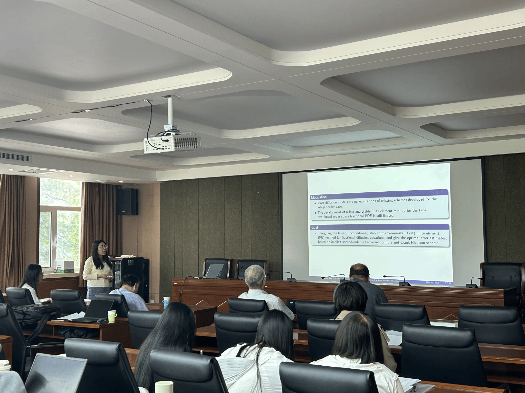 高兴华博士介绍了计算二维空间分数阶扩散方程的快速算法,用于计算二维非线性时间分数阶和空间分数阶扩散方程。采用时间双网格(TT-M)有限元(FE)方法来快速逼近非线性分数阶扩散方程的精确解,并给出了稳定性和误差的详细分析。