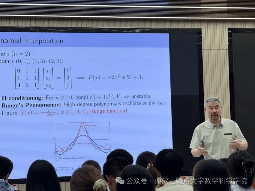 讲座特别关注了这些算法在实际问题中的广泛应用。教授指出,拉格朗日插值和多项式插值不仅能够帮助解决线性代数中的矩阵问题,还能用于非线性方程组的迭代求解。通过讲解这些核心算法,教授帮助同学们更好地理解了数学建模中的数值计算技巧,并激发了大家深入探讨数学模型和算法应用的兴趣。