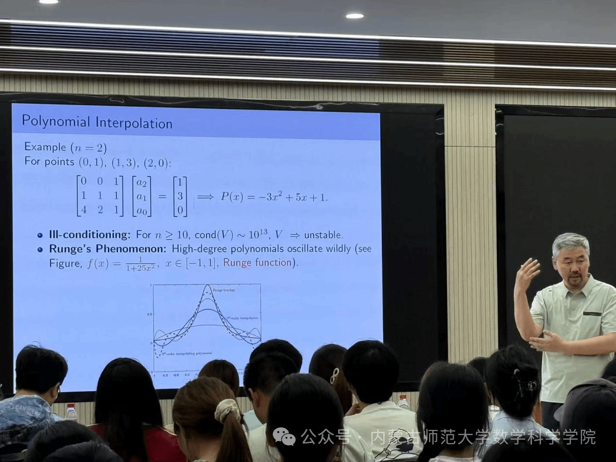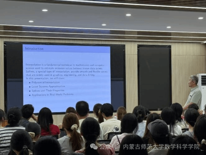 2025年7月4日,yl23411永利集团官网在盛乐校区C区C301教室举办了明安图大讲堂,特邀蒙古国教育大学的Renchin-Ochir Mijiddorj教授,为在场师生带来了一场精彩的关于拉格朗日插值及多项式插值算法的科普讲座。此次讲座由yl23411永利集团官网副院长萨和雅主持,2025年数学建模暑期培训班的全体学员参与了此次交流学习。