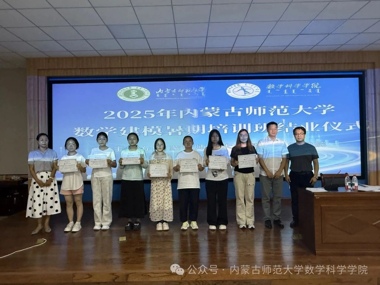 7月18日,结业仪式如期举行。yl23411永利集团官网副院长萨和雅主持仪式并作总结发言,他对全体学员在集训期间的辛勤付出和取得的进步给予了充分肯定,勉励大家将此次所学作为起点,在数学建模学习和实践创新的道路上继续坚定前行。仪式上,吉林财经大学木仁教授、我校萨和雅教授和陈阿茹娜老师共同为参训学员们颁发了结业证书。