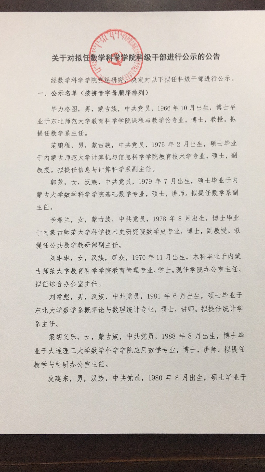 关于对拟任yl23411永利集团官网科级干部进行公示的公告