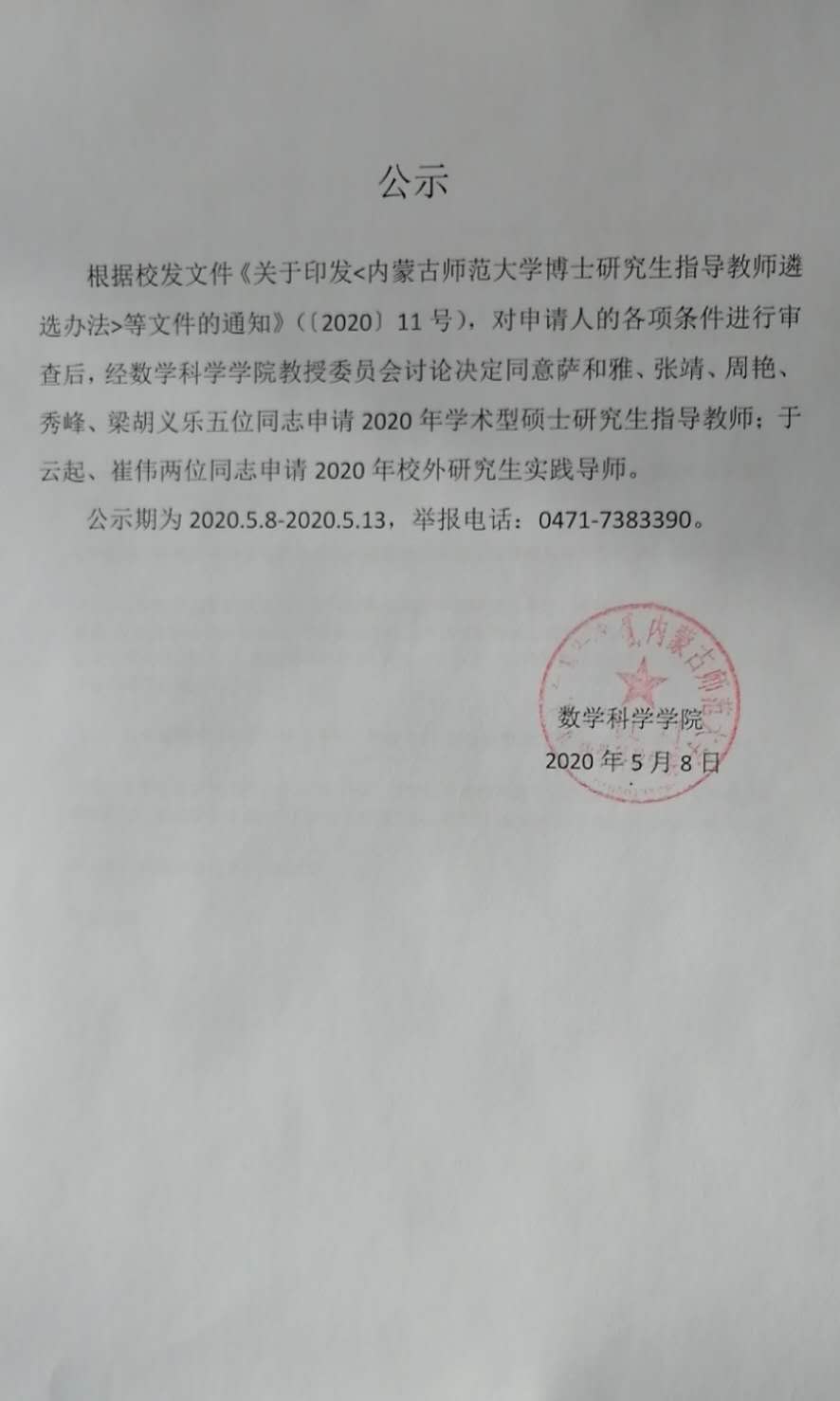 关于2020年度yl23411永利集团官网申请研究生指导教师的评审公示